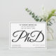 A photo PhD graduation party invitation in black text with a white background. This invitation includes your chosen photo on the back. Simply add your photo and information, add this invitation to your cart, and celebrate this major accomplishment.