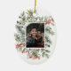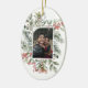 Photo Pine Greenery Holly Red Merry Christmas Ceramic Ornament