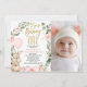 Photo Pink Rose Bunny Turning One 1st Birthday Invitation