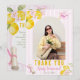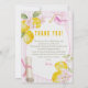 Photo Pink Stripes Lemons and Flowers Graduation Thank You Card