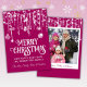 Photo Pink and White String Lights Christmas card with a cute whimsical fun and festive holiday greeting.