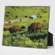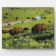 Plaque shown with a photo print of a beautiful valley with a herd of buffalo in Yellowstone National Park.