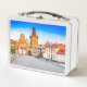 This is a standard metal lunchbox that appears to work just fine. We designed this box ourselves with an uploaded photo and custom text on the front and back. It looks absolutely beautiful except the front of the lunchbox is not centered like it shows in the photo. The print borders don't align with the inset flat part of the box where the preview photo online showed it perfectly centered in there. The back looks nice and centered though.