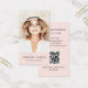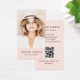 Modern, vertical, light blush pink custom photo business cards with your name, title and photo on the front. Customisable template fields for name, title, contact information and QR code on the back. You can change background and font colours, move and resize elements with the design tool. Follow us on Facebook: @businessstationery for more products, news, sales and more.