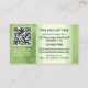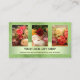Business card featuring your own custom photos (optional) framed by a green design. On the back you can add your QR code for free WiFi or special promotions or another photo. A beautiful business card for a green or organic/nature orientated store, or florist for instance. You can also turn this card into a gift certificate.