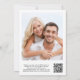 Enhance your vellum wedding invitation or save the date overlays with this white background card stock featuring your photo on the front. On the back, upload an additional photo and input your wedding website address to create a QR code for your guests to scan to RSVP online and obtain additional wedding details such as accommodations.