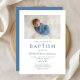 Personalised Photo Religious Cross Blue Boy Baptism Invitation Card.