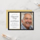 This photo retirement party invitation offers a sleek and professional layout, with a black border that is accented with a thinner gold border. Custom photo and text allows you to add a picture of the honoree and your retirement party details.