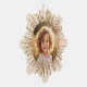 Cream coloured, snowflake shaped Christmas ornament card featuring your custom photo inside a retro sunburst border. Customisable text on the back.