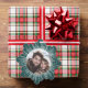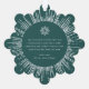 Pine green, snowflake shaped Christmas ornament card featuring your custom photo inside a retro sunburst border. Customisable text on the back.