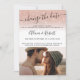 Announce the postponement of your wedding and new plans with this simple and minimalist black and white new plans script font and rose gold glitter ombre. Add your photo.
