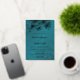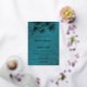 This elegant wedding invitation features rose gold line art floral cherry blossoms on a shimmering teal / turquoise background. With a custom photo on the backside.