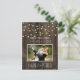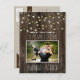 Photo Rustic Barn Wood Wedding Save The Date Cards- features a printed barn wood or reclaimed wood background with gold stars and glowing string lights at the top. You may change the demo couple's photo to one of your own.