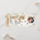 Destination Beach Wedding Boarding Pass Ticket Gold Plane Save the Date with heart and plane icon with tropical leaves. Add your photo