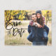 Modern Brush Script Save The Date Engagement Couple Photo Postcard