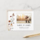 White Photo Floral Save The Date Postcard. This stylish & elegant photo Save The Date announcement postcard features gorgeous hand-painted watercolor wildflowers arranged in a lovely bouquet perfect. Find matching items in the White Boho Wildflower Wedding Collection.