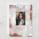 Add your photo in a gold geometric multi faceted frame. Shimmery Terracotta luminescent background with luminous rose leaves , eucalyptus leaves, baby's breath and sparkly twinkles. Reverse is a complimentary coordinated colour. This design looks especially nice on the Pearl Shimmer paper choice. Customise text, font style, colour and size. We created this template is to make it easy for you to personalise with your own information. This is part of a complete Wedding Stationery Suite with matching wedding, baby shower and other event stationery. Original Artwork © by WhimsicalArtwork™.