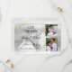Photo Save the Date. This Save the Date is a template for the Bride and Groom to personalise. The colour photos were cropped into squares. The black and white base photo was cropped to a 4x6 photo. It has a gold frame with pink flowers.