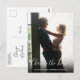 This simple photo script change of date card features a full bleed photo overlayed with an elegant script change of date above your names and message in white text. The reverse has additional details, including your wedding website, along with your return address and space for your recipient's address. Designed by Thisisnotme©