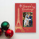 This beautiful couple's Christmas card design features a Paris theme with the Eiffel tower in gold foil against a beautiful Christmas red background. Easily personalise with a picture framed with gold foil. The text featured on the card is additionally in foil and can be personalised with a couple's name(s) and the year.