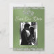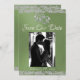 This romantic design features an elegant sage green background with glitter borders, placeholder for couple's photo, & two silver hearts intertwined with the date for the event in elegant script on the front. The back has a monogram placeholder, more info and place for your website on the back. Also available with different coloured backgrounds for your wedding theme colours. (Glitter is simulated in the artwork). Designed to coordinate with the "Two Shall Become One - Hearts, Doves & Glitter" Wedding Collection. To change details, click «Personalise». Replace photo with your own. To move the text or change the text size, font, or colour click «Click to customise further»