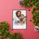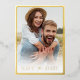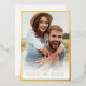 Photo Simple Save The Date. Simple and stylish, this elegant save-the-date wedding announcement card features a classy border and elegant calligraphy script pressed in real gold foil with 2 photos and a QR code for personalising. There is an optional white photo overlay at the bottom that can easily be deleted if you choose.