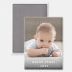 Give the gift of special memories with a stylish custom photo rectangular magnet. This template is set up for a baby, but is easy to personalise with a family, friend or pet's name, a wedding couple's monogrammed initials, or any wording of your choice. The colours and font style can also be customised using the Zazzle design tool. Create your own unique keepsake gift for any occasion. The design features a modern minimalist layout, elegant vintage art deco typography, and one picture. There's no better gift than the simple joys of cherished memories.