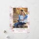 Vertical Photo custom Christmas Card with red and pink snowflakes on the front and back. The greeting reads "wishing you a snow very merry christmas and a happy new year" followed by your personalised wording. Minimal modern and elegant winter holiday design lettered in handwritten script and modern typography. Your photo is displayed in vertical, portrait format.