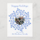 Add your own photo to this blue and white modern Scandinavian festive wreath holiday design. Makes a lovely family keepsake. Change the greeting and name to personalise. Photo credit: Photography © Storytree Studios, Stanford, CA