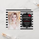 Photo Sweet 16 Birthday - Red Kiss Silver Black. Sweet sixteen birthday party invitation with your photo. Features black white stripes, script font, lips kiss and confetti. Classy black white red design with faux glitter silver. Perfect for an elegant 16th bday celebration.