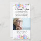 Elegant floral sympathy memorial thank you photo card- Displays a personal photo of your loved one. On white background with top and bottom border of watercolor floral design of spring flowers in pastel blue, pink, green, purple, and orange. Reads "Thank You" at the top with a message of gratitude above the photo. Feel free to change the sentiment to your own personalised words of thanks if you wish. The bottom reads 'From the Family of' with personalised name in elegant script. Nice way to express thank you to friends and loved ones.