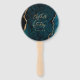 Photo Teal Blue Gold Agate Script Wedding Hand Fan