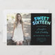Photo Teal Turquoise Black Balloons Sweet 16 Invitation