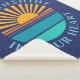 A round photo template on a dark blue background. Click personalise to change the sunset to your own image, and the text to your own, or buy it as is.