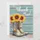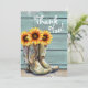 Photo Thank You Rustic Country Sunflower Boots Card
