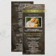 Photo The Hunt is Over Camo Wedding Programs - features a country rustic printed hunting camo or forest background with the wording, "The Hunt is Over" at the top. The back features the same camouflage background. You may change the demo couple's photo to one of your own.