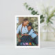Photo typography family modern simple postcard. Chic and pretty minimalist photo with colourful letters, family word with pink, yellow, green, blue letters. Unique and stylish postcard for parents, mothers, moms, women, family, relatives, friends, grand-parenrs for birthdays, christmas, mother's day, weddings, home decor.