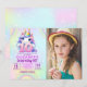 Personalized photo invite featuring a sweet unicorn illustration and pastel rainbow colors for her 10th birthday.