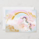 Photo unicorn birthday party invitations with pretty pastel pink purple and teal blue unicorn and rainbow on a beautiful gold cloud background with space for your photo. This beautiful photo unicorn birthday party invitation is easily customised for your event by simply adding your photo and event details in the font style of your choice. You can also change the background colour. This is a printed design with no real glitter.