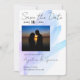 This modern add your own photo Save The Date card has abstract watercolor paint stroke original design in shades of blue and purple with fully editable text for your special wedding. Watercolor copyright Ann Powell all rights reserved.