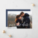 Announce your upcoming Wedding with this photo Save The Date card with your favourite couples picture. To personalise, simply insert your image into our easy template, replacing the sample. Click: FILL to cover the area. Next, insert your text into the template, replacing the sample text. Front text includes: Save The Date! Reverse background is a soft taupe background, with text: the Bride and Groom's First Names, Are Getting Married, Wedding Date, and Formal Invitation To Follow.