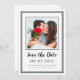 Save The Date engagement photo announcement card design features your favourite square engagement picture framed by a black square frame on a crisp white background. Personalise and share your engagement and wedding details with your guests in stylish black lettering and script. The design is completed with a modern double frame in black. The back of the card is solid white. (For best placement of your picture, use a photo editing tool to centre and crop BEFORE uploading to the Zazzle website.) Contact invitationsuites@gmail.com or use the message function with questions or custom colour requests.