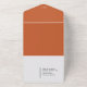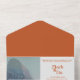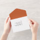These are handy all-in-one wedding invitations with easy-to-tear perforated RSVP postcards. Just add your photo and change the text to fit your needs. Terracotta colour shown. Nice, modern look. A QR code is also provided where you can include your wedding website, wedding registry, and more. Use the return address part of the template if you want the address printed directly on the RSVP postcard or you can opt for return address labels. Use the template to personalise.
