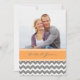 Wedding invitation custom photo cards in elegant and contemporary charcoal grey, tangerine orange and white retro and casual chevron zigzags stripes pattern. Customise these invitations with your wedding details and your own photo. Available in matching products for all of your wedding needs.