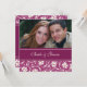 Wedding invitation custom photo cards in elegant fuchsia pink and off white floral pattern. Customise these invitations with your wedding details and your own photo. Available in matching products for all of your wedding needs.