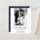 Small 4.5" x 5.6" affordable navy blue wedding save the date cards feature your photo and your details in chic lettering. **WHITE ENVELOPES ARE OPTIONAL. Be sure to double-check your order before adding it to your cart as what you see on the screen is what will be printed. The Live Design Service can help you with your design layout if needed. MORE designs in our store.