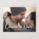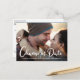 Even though circumstances require you to postpone your wedding date, show your guests your love goes on with your favourite engagement photograph on this wedding change of date announcement postcard. "Change of Date" is written in large contemporary white script across the bottom of your photo, and underneath you can personalise your names and whether your wedding has been postponed, venue changed, etc. On the reverse side, you can further personalise your message in more detail and add your new wedding date and venue.