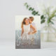Elegant and chic save the date postcard features your photograph on the front framed in a large white text Save the Date, which is written in a beautiful script calligraphy. Your names, wedding date and location follow. The back gives more information on your wedding. Very easy to personalise and customise for your special message.