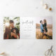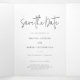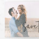 Capture the essence of your love story with our exquisite Custom Photo Wedding Save the Date Card featuring elegant script typography. This timeless and personalised design serves as the perfect prelude to your special day, allowing you to share a glimpse of your joy with loved ones. This save the date features a horizontal photo and script greeting which spans the entire background, outside of this tri-fold card.