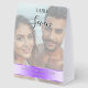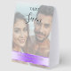 Across the bottom third, a chic lilac purple colored band creates a polished, modern contrast. Here, your names and wedding date appear in clean white with black drop shadow lettering for a timeless, sophisticated finish. Both the upper and lower text areas are fully editable, and the background photo can be replaced with any picture you choose.